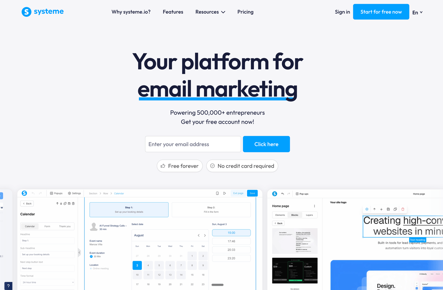 Systeme.io is a French-built, all-in-one platform that lets you run an entire online business — email marketing, sales funnels, online courses, membership sites, affiliate programs, and now automated webinars and appointment booking — from a single dashboard.